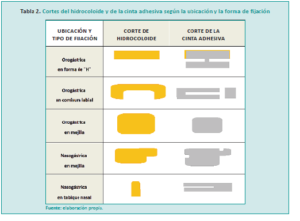 • Fijación: apósito hidrocoloide y tela adhesiva
